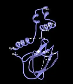 Белок состоит из остатков 213 аминокислот, а его молекулярная масса составляет 24 153 Да[5].