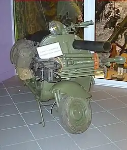Так или иначе, французы приобрели около 800 таких САУ (по 500 долларов за единицу) и использовали это устройство во время войн в Алжире и Индокитае. Французские военные довольно быстро пришли к выводу, что пушка слишком тяжела для мотороллера, поэтому по большей части мотороллеры без пушек были использованы как средство транспорта для курьеров.