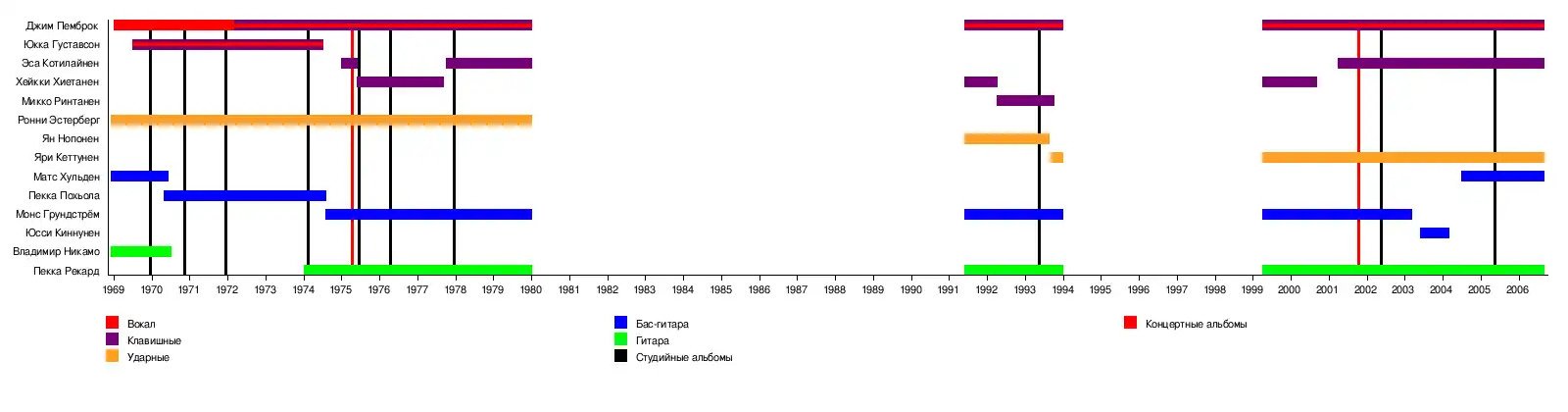 - Хейкки Хиетанен (Hessu/Pedro), 1975—1977, 1991—1992, 1999—2000