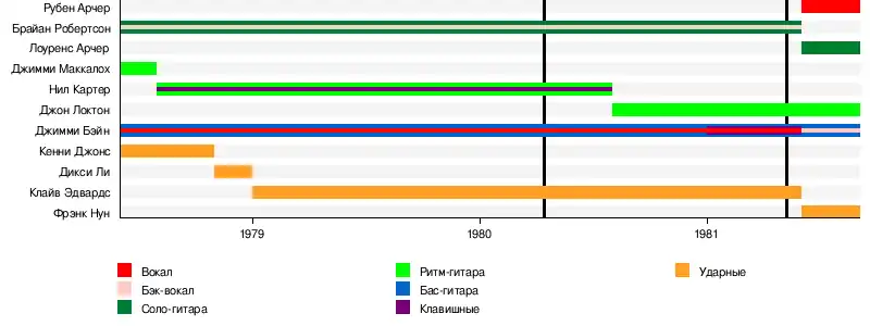 - Брайан Робертсон — соло-гитара, бэк-вокал (1978—1981)