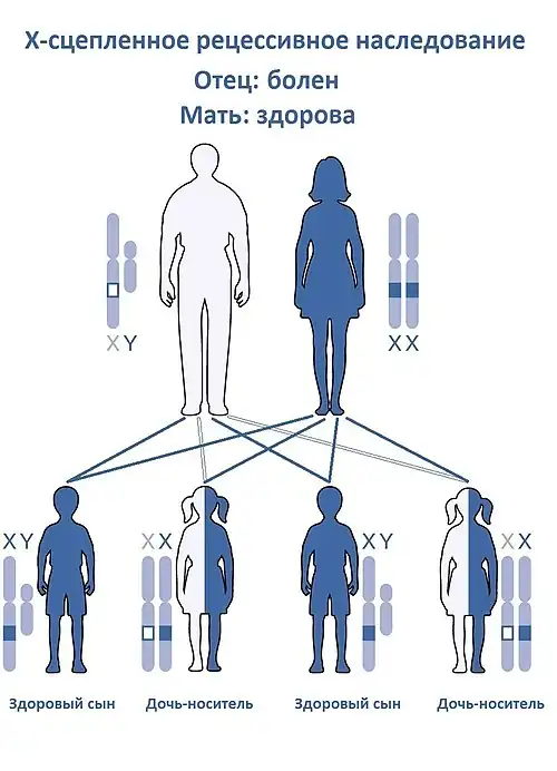 Как любое другое Х-сцепленное рецессивное заболевание, X-сцепленный ихтиоз наследуется следующим образом. Женщина-носитель при каждой беременности имеют 25%-ную вероятность родить здоровую дочь-носителя (как она сама), 25%-ю вероятность родить здоровую дочь без носительства мутантного гена, 25%-ю вероятность родить больного сына и 25%-ную вероятность родить здорового сына. Это также означает, что каждая дочь имеет 50 % шанс стать носителем, а каждый сын имеет 50 % вероятность наличия заболевания.