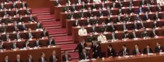 - Съезд проходил в условиях осуществляемых в Китае мер профилактики и контроля COVID-19, поэтому, в частности, делегаты в зале Дома народных собраний, где проходил съезд, носили медицинские маски[43].