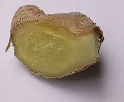 Корневище имбиря имеет вид кругловатых, расположенных преимущественно в одной плоскости, пальчаторазделённых кусочков.