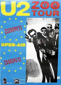 ![]() Рекламный флай-постер британского концерта U2 в рамках Zoo TV Tour | ||||
