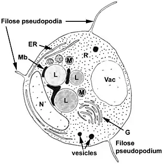 ![]() Амебоидная зооспора Amoeboaphelidium protococcarum | ||||||||