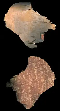 - ↑ БЕРЕСТЯНЫЕ ГРАМОТЫ : [арх. 28 сентября 2022] / Зализняк А. А., Янин В. Л. // «Банкетная кампания» 1904 — Большой Иргиз. — М. : Большая российская энциклопедия, 2005. — (Большая российская энциклопедия : [в 35 т.] / гл. ред. Ю. С. Осипов ; 2004—2017, т. 3). — ISBN 5-85270-331-1.
