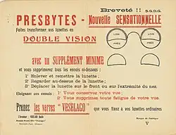Первое упоминание бифокальных линз приписывается Бенджамину Франклину и относится к 1784 году, когда он сообщил своему другу в письме, что придумал очки, в которых можно хорошо видеть объекты как вблизи, так и удаленные на расстояние[1].