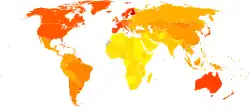Распространённость болезни в популяции зависит от различных факторов, в том числе от заболеваемости и смертности. Поскольку заболеваемость растёт с возрастом, необходимо непременно учитывать средний возраст населения в исследуемой местности. По состоянию на 2000 год, в США как в целом, так и в группе 65—74 лет около 1,6 % населения имели болезнь Альцгеймера. В группе 75—84 лет этот показатель составлял уже 19 %, а среди граждан, чей возраст превысил 84 года, распространённость болезни составляла 42 %[30]. В менее развитых странах распространённость болезни ниже[31]. По данным ВОЗ, в 2005 году деменцией страдали 0,379 % мирового населения, а прогноз на 2015 год достигал значения 0,441 %, и ещё больший процент населения, 0,556 %, может быть поражён болезнью к 2030 году[32]. К подобным выводам приходят и авторы других работ[31]. Ещё одно исследование говорит о том, что в 2006 году распространённость болезни в мире составляла 0,4 % (разброс 0,17-0,89 %, абсолютное количество — 26,6 млн человек с разбросом 11,4-59,4 млн) и предсказывает, что к 2050 году долевой показатель вырастет втрое, а абсолютное количество больных — вчетверо[5].