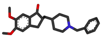Известным признаком болезни Альцгеймера является снижение активности холинергических нейронов[168]. Ингибиторы холинэстеразы центрального действия снижают скорость разрушения ацетилхолина (ACh), повышая его концентрацию в мозге и компенсируя потерю ACh, вызванную гибелью холинергических нейронов[169]. Первым таким ингибитором, одобренным для применения при болезни Альцгеймера, был такрин, однако в 2012 году его применение в США было запрещено из-за гепатотоксических и других побочных эффектов[170][171]. Врачами на данный момент используются такие ACh-ингибиторы, как донепезил[172], галантамин[173], и ривастигмин (в форме капсул[174] и пластыря[175]). Есть свидетельства эффективности этих препаратов на начальной и умеренной стадиях[176], а также некоторые основания к их применению на поздней стадии. При наступлении тяжелой деменции одобрены донепезил, ривастигмин (только в форме пластыря) и мемантин[177][178][179]. Использование этих препаратов при мягком когнитивном нарушении не замедляет наступление болезни Альцгеймера[180]. Среди побочных действий препаратов самыми распространёнными являются чувство тошноты и рвота, связанные с избытком холинергической активности, они возникают у 1—10 % пациентов и могут быть слабо либо умеренно выраженными. Реже встречаются спазмы мышц, брадикардия, снижение аппетита, потеря веса, увеличение кислотности желудочного сока[181].