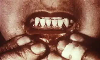 Хорошо изученный дефицит витаминов у человека связан с тиамином (бери-бери), ниацином (пеллагра)[20], витамином C (цинга), фолиевой кислотой (дефекты нервной трубки) и витамином D (рахит)[21]. В большей части развитого мира эти дефициты встречаются редко из-за достаточного количества пищи и добавления витаминов в обычные продукты[16]. В дополнение к этим классическим заболеваниям, связанным с дефицитом витаминов, некоторые данные также указывают на связь между дефицитом витаминов и рядом различных расстройств[22][23].