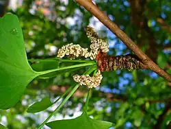 Мужские колоски. Женские семязачатки на ножках. Семена гинкго.[11]:310 |