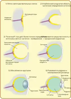 - ↑ 1 2 Land, M. F.; Fernald, R. D. The evolution of eyes (неопр.) // Annual Reviews (publisher). — 1992. — Т. 15. — С. 1—29. — doi:10.1146/annurev.ne.15.030192.000245. — PMID 1575438.