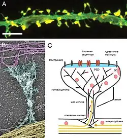 - ↑ Fiala John C., Spacek Josef, and Harris Kristen M. Dendritic Spine Pathology: Cause or Consequence of Neurological Disorders? (англ.) // Brain Research Reviews : journal. — 2002. — Vol. 39, no. 1. — P. 29—54. — ISSN 01650173. — doi:10.1016/S0165-0173(02)00158-3.