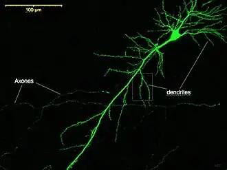 Дендрит (от греч. δένδρον (dendron) — дерево) — разветвлённый отросток нейрона, который получает информацию через химические (или электрические) синапсы от аксонов (или дендритов и сомы) других нейронов и передаёт её через электрический сигнал телу нейрона (перикариону), из которого вырастает. Термин «дендрит» ввёл в научный оборот швейцарский ученый В. Гис в 1889 году[1].