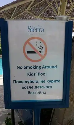 Курение запрещено во всех закрытых общественных помещениях, к которым относятся гостиницы, бары, рестораны, кафе и ночные клубы. Курить разрешается только на открытых местах.[15]