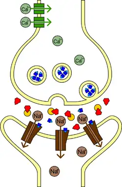При стимуляции двигательных и вегетативных нейронов происходит выброс медиатора ацетилхолина в синаптическую щель синапса, благодаря чему производится передача импульса к мышце или органу. В норме после передачи импульса ацетилхолин расщепляется ферментом ацетилхолинэстеразой (АХЭ), в результате чего передача сигнала прекращается.