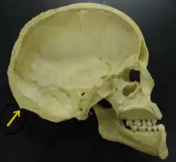 Линия глабелла-инион используется при измерениях высоты черепа и брегматического угла.