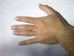 Кисть имеет три отдела: запястье (carpus), пястье (ossae metacarpi) и пальцы (digitus mani)[2].