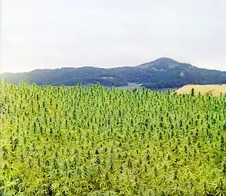 В листьях и соцветиях конопли содержится тетрагидроканнабинол и другие каннабиноиды. Конопля имела большое промышленное значение с XV по начало XX веков, после чего посевы были значительно сокращены. Единая конвенция о наркотических средствах (1961) включает коноплю в список наркосодержащих растений и обязывает правительства стран-участников строго контролировать её выращивание[6].