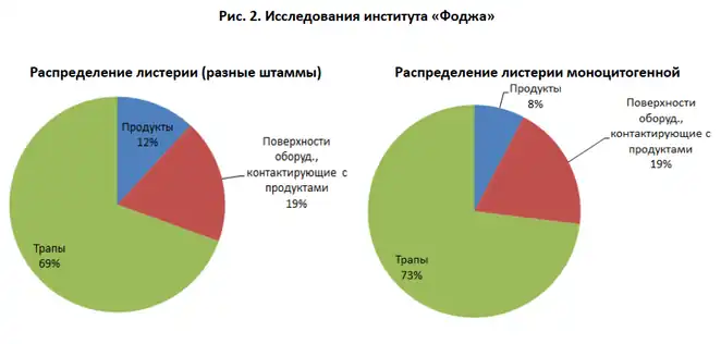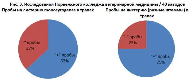 При этом 25 % всех проб, взятых из трапов, были положительными на листерию.