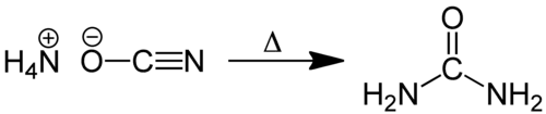 Это превращение является первым синтезом органического соединения из неорганического. Вёлер получил мочевину нагревом цианата аммония, полученного реакцией взаимодействия цианата калия с сульфатом аммония. Это событие нанесло первый удар по витализму — учению о жизненной силе[4][5].