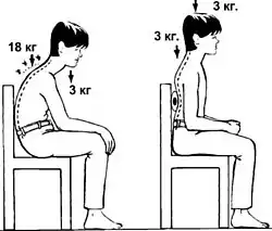 «Сидячая природа школьных занятий первый и постоянный враг хорошей осанки. Из-за пренебрежительного отношения к физической культуре, школьники переходят из класса в класс с сутулой спиной, выступающими лопатками, наклонённой головой и другими деформациями вызванными школьным обучением».