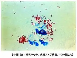 ![]() Mycobacterium leprae (окраска по Цилю — Нельсену) | ||||||||||