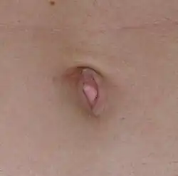 • Выступающий (кожный пуп): пупок выступает над поверхностью живота. Только 4-10% людей имеют выступающий пупок[7]. Также пупок может стать выступающим вследствие пупочной грыжи и некоторых других заболеваний, например, омфалита или асцита.