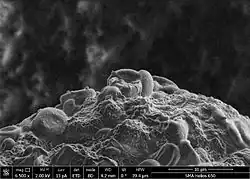 Повреждение сосудов сопровождается немедленной активацией тромбоцитов. Адгезия (прилипание) тромбоцитов к волокнам соединительной ткани по краям раны обусловлена гликопротеином фактором Виллебранда[4]. Одновременно с адгезией наступает агрегация тромбоцитов: активированные тромбоциты присоединяются к повреждённым тканям и друг к другу, формируя агрегаты, преграждающие путь потере крови. Появляется тромбоцитарная пробка[3].