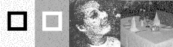 При широкополосном визуальном снеге точки появляются в виде грубой текстуры (похожей на рассеивание границ объектов) с низкой амплитудой, скрывающей периферию в пространстве объектов. Точки могут казаться как светлее, так и темнее фона.