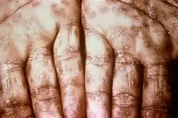 - ↑ Кожные и венерические болезни. Руководство для врачей / Под ред. Ю. К. Скрипкина. — М.: Медицина, 1996. — Т. 4. — С. 42. — 352 с. — ISBN 5-225-02824-1.