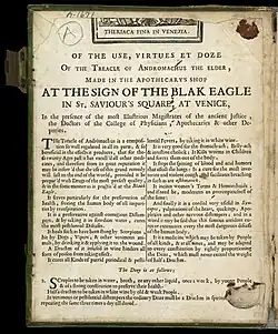 В 1667 году французский аптекарь Моисей Шара впервые обнародовал состав «французского» териака.