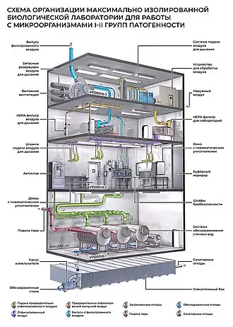 - ↑ Racaniello V. Visiting biosafety level-4 laboratories. Virology Blog (14 июля 2014). Дата обращения: 3 апреля 2016. Архивировано 18 апреля 2016 года.