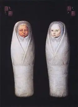 Картина, известная как De Wikkellkinderen (Дети в пелёнках, 1617, автор неизвестен), считается первым изображением СФФТ.[7] На картине изображены близнецы, один из которых — бледен (возможно анемичен), а второй — румян (возможно полицитемичен). Анализ родословной владельцев картины указывает на факт, что близнецы не выжили. Тем не менее не существует доказательств, что это произошло вследствие СФФТ.
