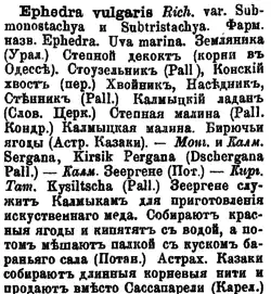 Статья из «Ботанического словаря» (1878) Н. И. Анненкова, в которой приведены различные названия хвойника двухколоскового[11]
