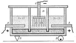 Катодом электролизёра служит поток ртути, прокачиваемой насосом. Аноды — графитовые, угольные или малоизнашивающиеся (ОРТА, ТДМА или другие). Вместе с ртутью через электролизёр непрерывно течёт поток питающего раствора поваренной соли.