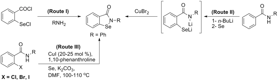- ↑ Synthesis and Antioxidant Activity of Peptide-Based Ebselen Analogues. Chem. Eur. J. 17 (17): 4849–57. 2011. doi:10.1002/chem.201003417. PMID 21400619.