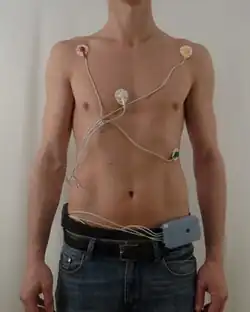 Для измерения разности потенциалов на различные участки тела накладываются электроды. На руки и на ноги ставятся пластмассовые щипчики-зажимы, а на грудную клетку ставятся присоски, в ряде зарубежных стран на грудь ставят липкие электроды. Так как плохой электрический контакт между кожей и электродами создает помехи, то для обеспечения проводимости на участки кожи в местах контакта наносят токопроводящий гель, ранее во времена СССР и в РФ в месте контакта наносили спирт. При нанесении спирта, присоски как правило присасывались намного сильнее. Ранее использовались марлевые салфетки, смоченные солевым раствором.