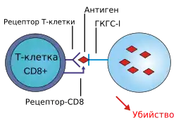 CD8 (Кластер дифференцировки 8) — трансмембранный гликопротеин, служащий корецептором Т-клеточных рецепторов (TCR). Как и TCR, CD8 связывается с молекулой главного комплекса гистосовместимости (MHC), но в отличие от TCR он специфичен для белков MHC класса I. Есть и другое отличие от TCR, который взаимодействует с антигенсвязывающей областью МНС и обеспечивает специфичность распознования, а молекула ко-ресептора CD8 связывается с неполиморфной частью МНС, доменом а3, расположенной далеко от антигена.[2][3].