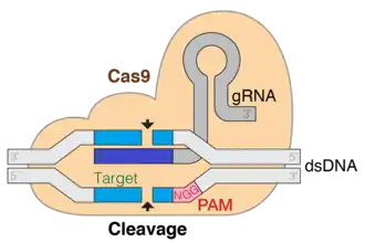 Кроме изначальной функции в бактериальном иммунитете, белок Cas9 активно используют для создания точечных разрывов в двойной спирали ДНК, такие разрывы могут приводить к инактивации генов или созданию гетерологичных генов посредством соединения негомологичных концов и соответствующей гомологичной рекомбинации. Вместе с белками ZFN и TALEN, Cas9 становится значимым инструментом редактирования генома.[3]