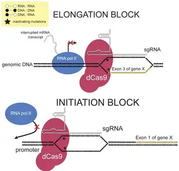 Соединив инактивированную молекулу dCas9, которая связывает ДНК, но не расщепляет её, с нуклеазой FokI, удаётся получить нуклеазы и рестриктазы для высокоселективного разрезания ДНК[23][24][25]. Разработан также способ избирательного эпигенетического перепрограммирования активности генов с помощью инактивированной молекулы dCas9, соединённой с ферментом, осуществляющим деметилирование ДНК[26]. Причём такое перепрограммирование эпигенома можно проводить даже in vivo[27][28]. Позднее выяснилось, что если укоротить управляющую РНК до 14-15 нуклеотидов, то молекула Cas9 теряет способность разрезать ДНК[29][30]. Используя это свойство удалось создать систему для избирательной активации определённых генов in vivo и проверить её эффективность путём лечения мышей со смоделированными заболеваниями[31]. У этого метода есть только одна проблема: обычно система CRISPR загружается в безвредный вирус, называемый аденоассоциированным вирусом (AAV), который переносит систему в клетку. Но весь белок, состоящий из dCas9 и направляющей РНК, слишком велик, чтобы поместиться в один AAV. Чтобы обойти эту проблему, исследователи загрузили dCas9 в один вирус, а управляющую РНК — в другой[31]. Созданы трансгенные линии мышей для направленной регуляции генов in vivo путем редактирования эпигенома с помощью систем dCas9p300 и dCas9KRAB. Эти линии мышей являются удобными инструментами для манипулирования экспрессией генов in vivo с помощью различных направляющих РНК.[32]