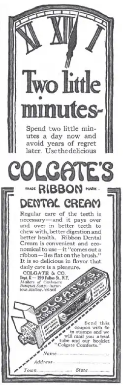 Бренд Colgate стал популярен в 1950-е годы со слоганом «It Cleans Your Breath While It Cleans Your Teeth», написанным копирайтером Алисией Тобин.