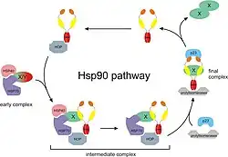 - ↑ Pratt WB, Toft DO (2003-02-01). Regulation of signaling protein function and trafficking by the hsp90/hsp70-based chaperone machinery. Exp. Biol. Med. (Maywood). 228 (2): 111–33. CiteSeerX 10.1.1.334.341. doi:10.1177/153537020322800201. PMID 12563018. S2CID 9162123.